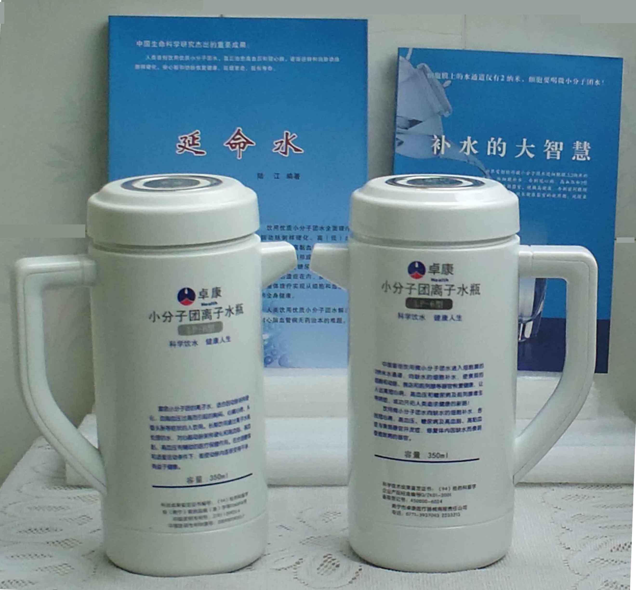 本品大量用戶的使用效果表明,能治愈冠心病、腦動脈硬化、原發(fā)性高(低)血壓、高血脂、高粘血癥、高血尿酸癥(痛風)和2型糖尿病、衰弱器官并發(fā)癥(前列腺增生、腎衰與尿毒癥)及中風后遺癥等療效好。產品配信譽卡。使用壽命30年,不換芯,易清洗。團購優(yōu)惠。從郵局匯款,匯費1%,地址按本頁下方地址、聯(lián)系人寫。從銀行匯款,請點擊[聯(lián)系匯款]欄,從工商銀行匯款,建設銀行、農業(yè)銀行匯款,均免收匯費,匯款后20--30分鐘內發(fā)短信,可用微信轉帳,均免匯費,微信號即手機號13768308380。匯款后,告知你的姓名和地址,我公司聯(lián)系人手機號是:13768308380卓康牌離子水瓶為我公司獨家生產,郵購產品配《補水的大智慧》彩印書一本,另配四季出版社出版的新書《補水的大智慧》一本,并配光盤一張(含央視主持人釆訪陸江的對話視頻)。目前市場和"淘寶網"上有人兜售假冒的偽品,望讀者審察辯別真?zhèn)危旒僬哓飧`假冒本公司的各種證、獲獎獎項、專利號和外包裝盒上的中英文字,包括科技成果的鑒定意見等,請讀者注意防偽。如何識別假貨?已經買了假貨怎么辦?(請點擊[打假掠影][打假掠影])。